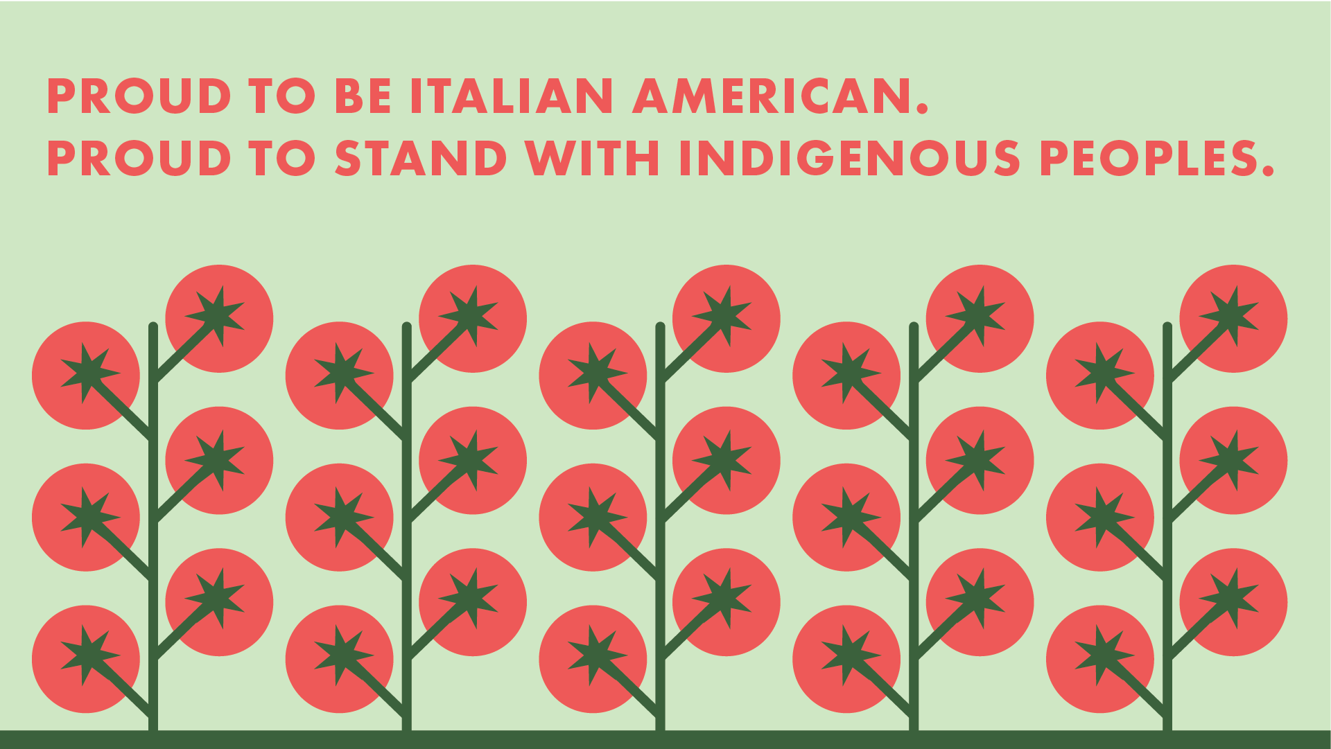 This brand was created for Italian Americans for Indigenous Peoples Day, an organization focused on rethinking cultural identity and connection. The design centers on a tomato on the vine — a familiar symbol of Italian heritage that also carries a deeper story. The tomato, while iconic in Italian cuisine, originated in the Americas, making it a natural bridge between the two cultures.